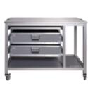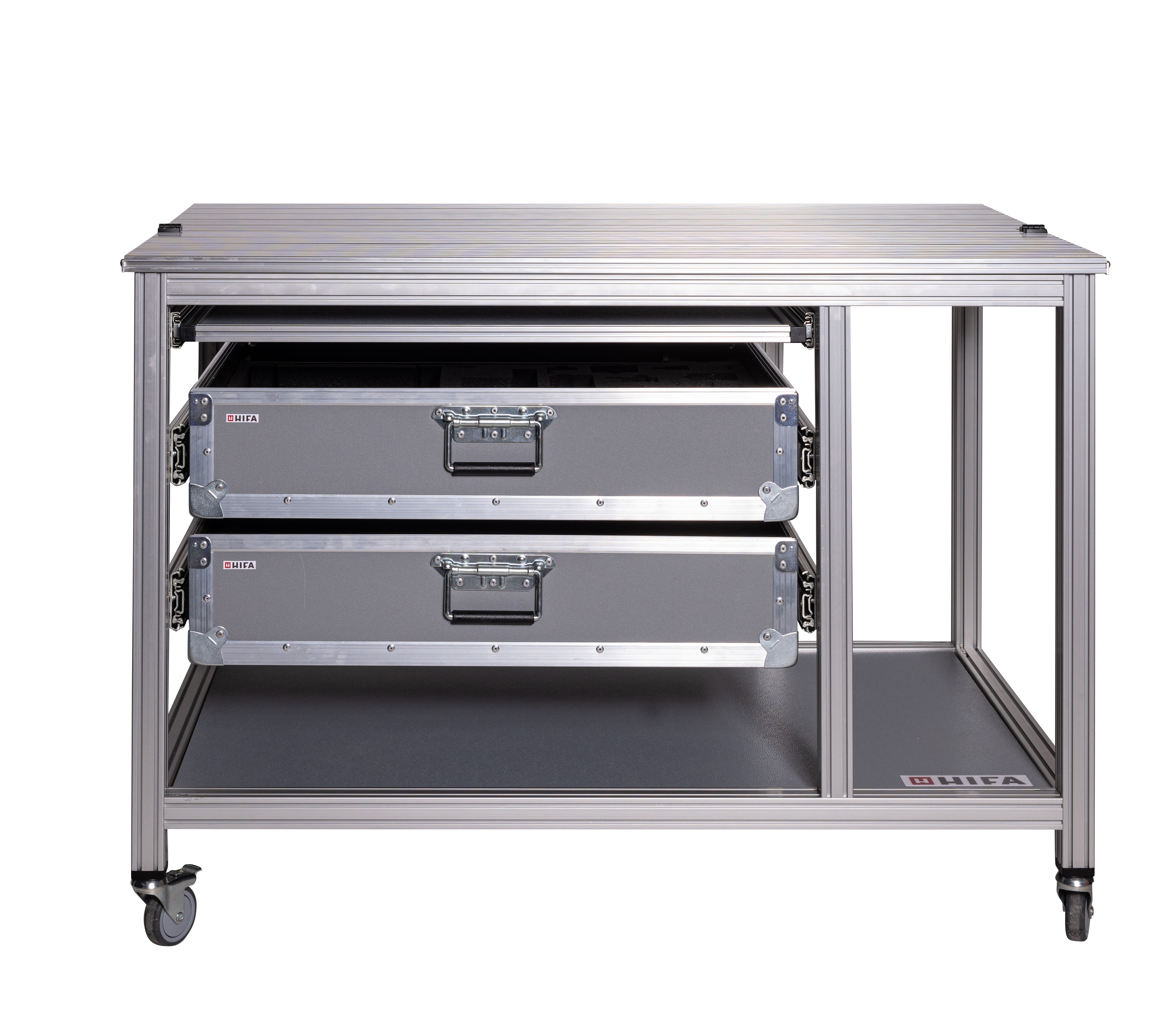 An optional trolley with folding shelves for items such as a PLC system, compressor or teaching aid can also be provided.